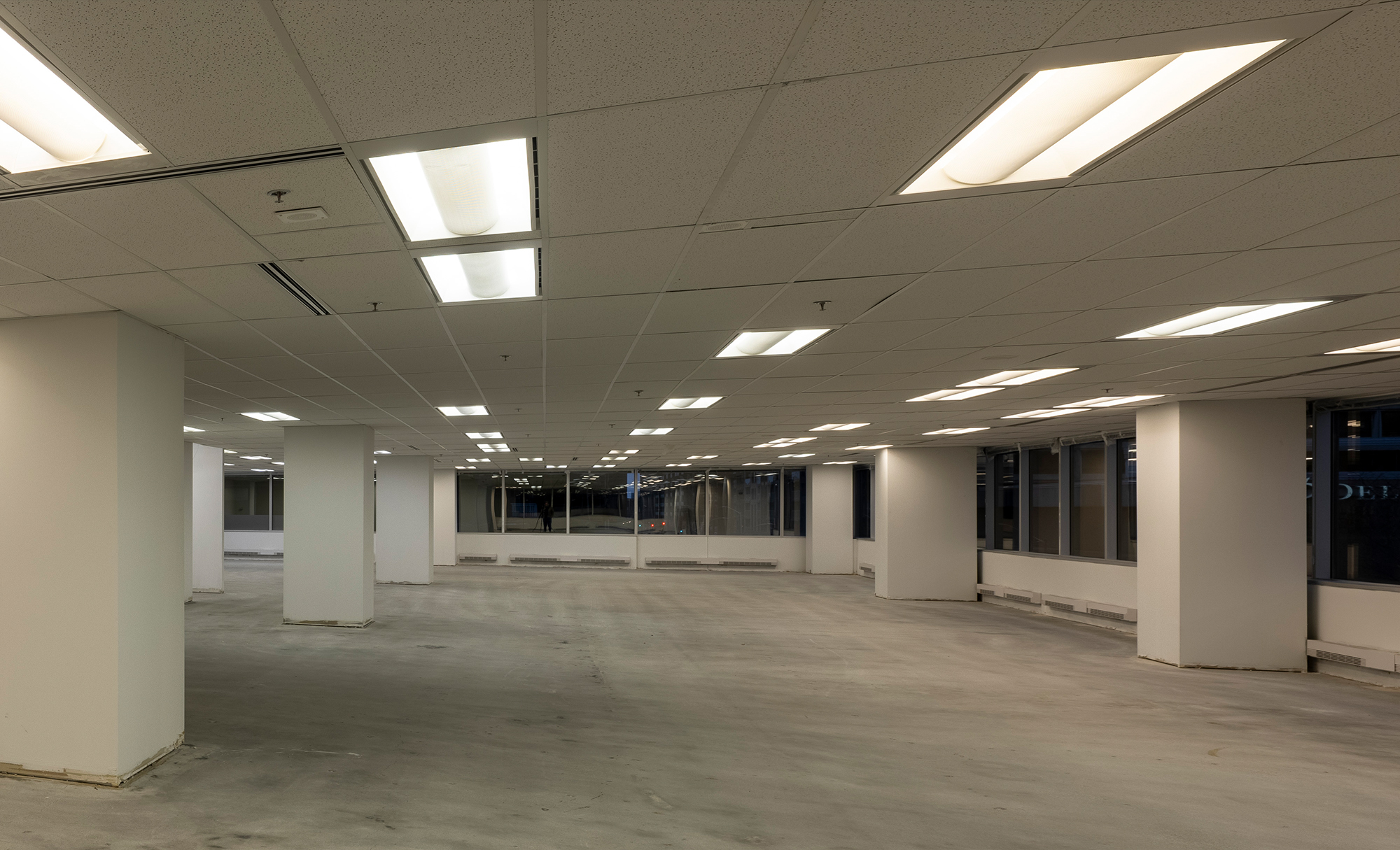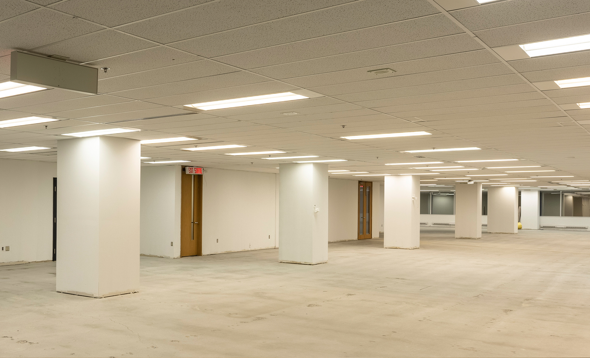 This project involved a full demolition of the base building within Class A office space, requiring precise execution to meet the unique challenges of an occupied environment. The scope included the removal of all partitions, lighting, plumbing and fire safety systems, followed by patching, painting and ceiling tile reinstatement. Key challenges included performing noisy work exclusively at night to minimize disruption to tenants and managing logistical constraints with access limited to a single freight elevator and one loading dock parking spot.